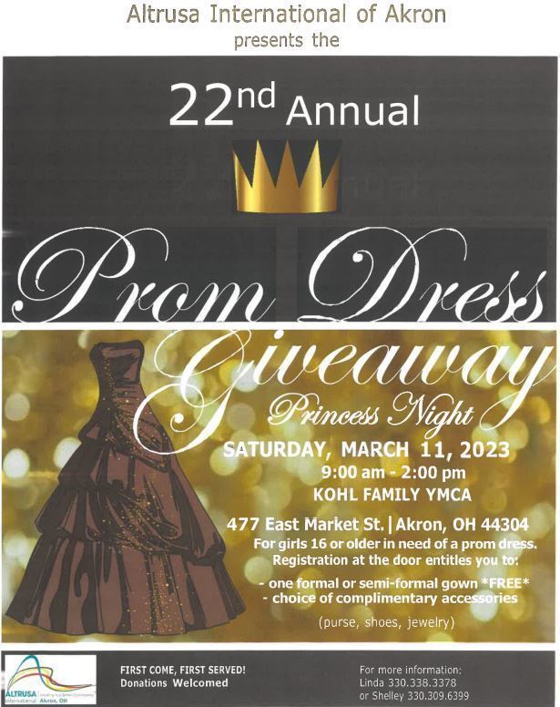 For girls 16 or older in need of a prom dress. Registration at the door entitles you to: one formal or semi formal gown *FREE* and choice of complimentary accessories.